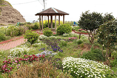 店前の花壇では花が見頃となっています。